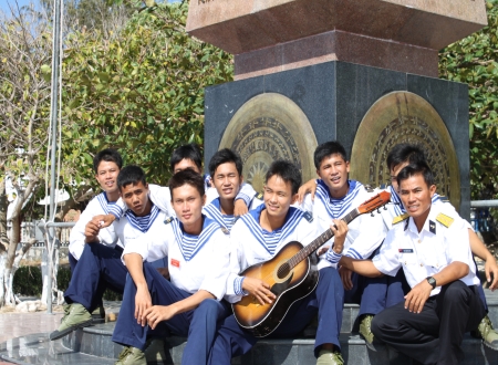 在船的一角,一位头发已变白的中年男人默默地看着船舷一侧翻开的波浪。他就是黎春发上尉。这是他在双子西岛插上解放旗帜37年后,首次返回故地。他激动的说:“这次我很幸运能回来看看。我想看看岛上的发展情况,主权保卫得如何。有时候回想起以前的战斗岁月,我激动得流下了眼泪,不知能否再回来看看。2000年,我曾经向越南海军部队表示,如果他们到长沙就让我跟着去,看看这里的变化。现在我终于如愿以偿了。”