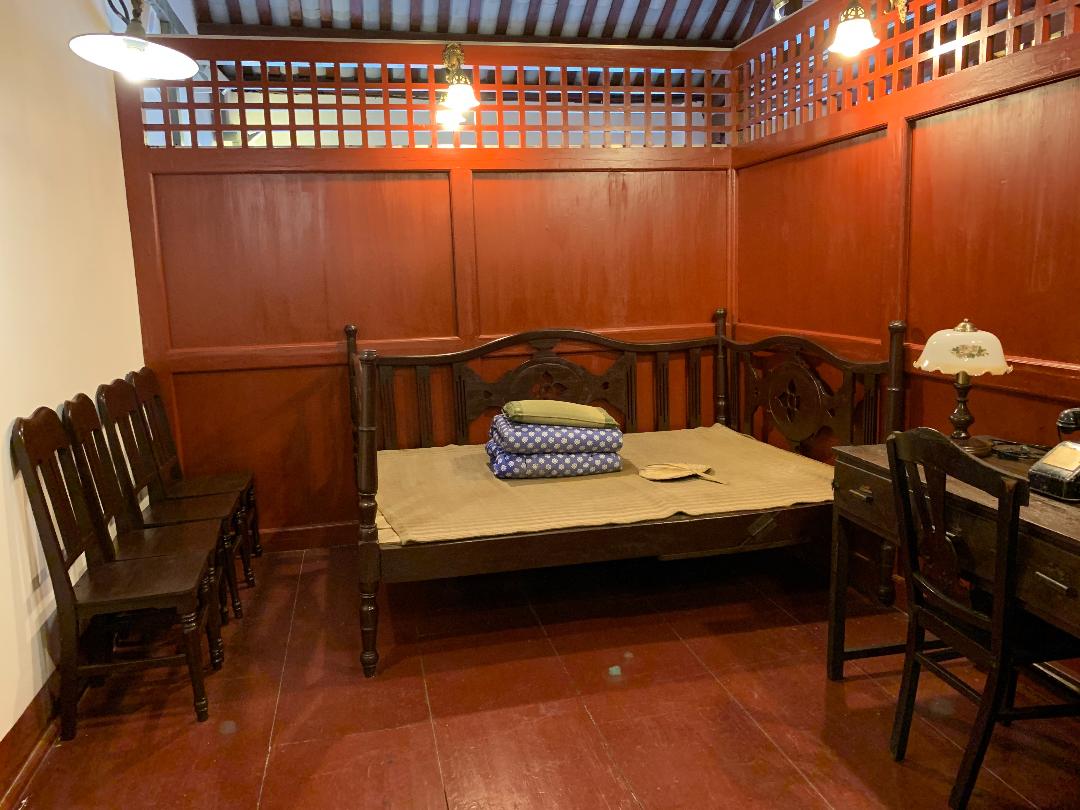 胡志明主席在二楼住过的房间仍保留原状。里面有一张床、一套已经褪色的卡其布衣服、一套桌椅、电话、钟等等。就在这间仅有几平方米的房间里,胡志明主席曾钻研谋划越南革命道路,使革命走向胜利,为民族带来独立自由。也就在这里,胡志明主席完成了诗集《狱中日记》。