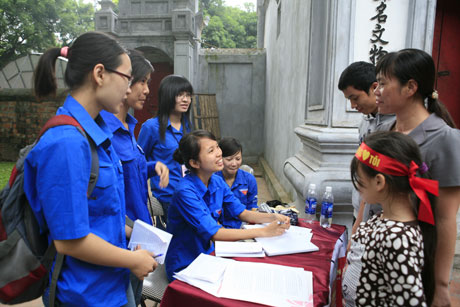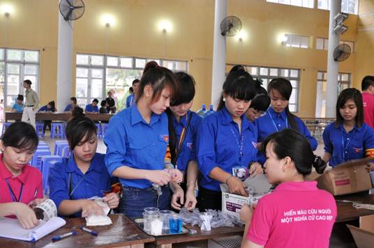 河内青年动员献血协会会长黎忠孝说:“来这里参加献血的大部分是二征夫人郡各所大学的学生,如百科、建设、经济等大学,甚至还有一些来自比较远的大学,如:嘉林第一农业大学的学生。今天上午,共有约300人来参加献血。他们都希望为生活出点儿力。”