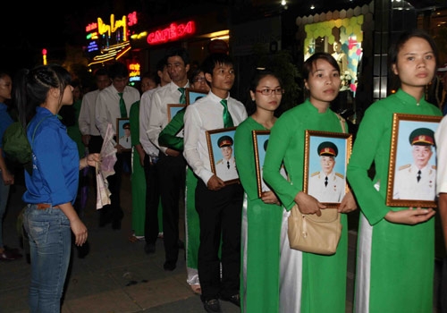 面对武元甲大将的遗像,每个人都盼着一吐心声。老街省的梁氏蓉说:“没有见到大将,只看到了大将遗像。大将去世了。我们老街人民一直想念大将”。