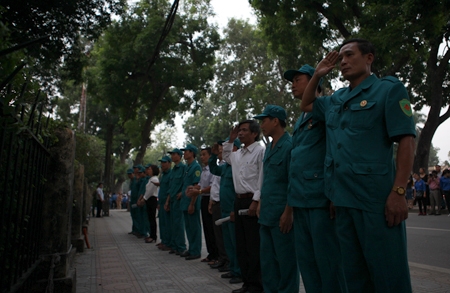 正在向吊唁人群发放武元甲大将像章的河内米线街居民黄碟,希望通过这枚小小的像章寄托哀思。他说:“惊悉大将去世,我十分痛心。我选择大将的两张肖像制作像章。我会发给每个前来吊唁的人,直到吊唁期结束”。