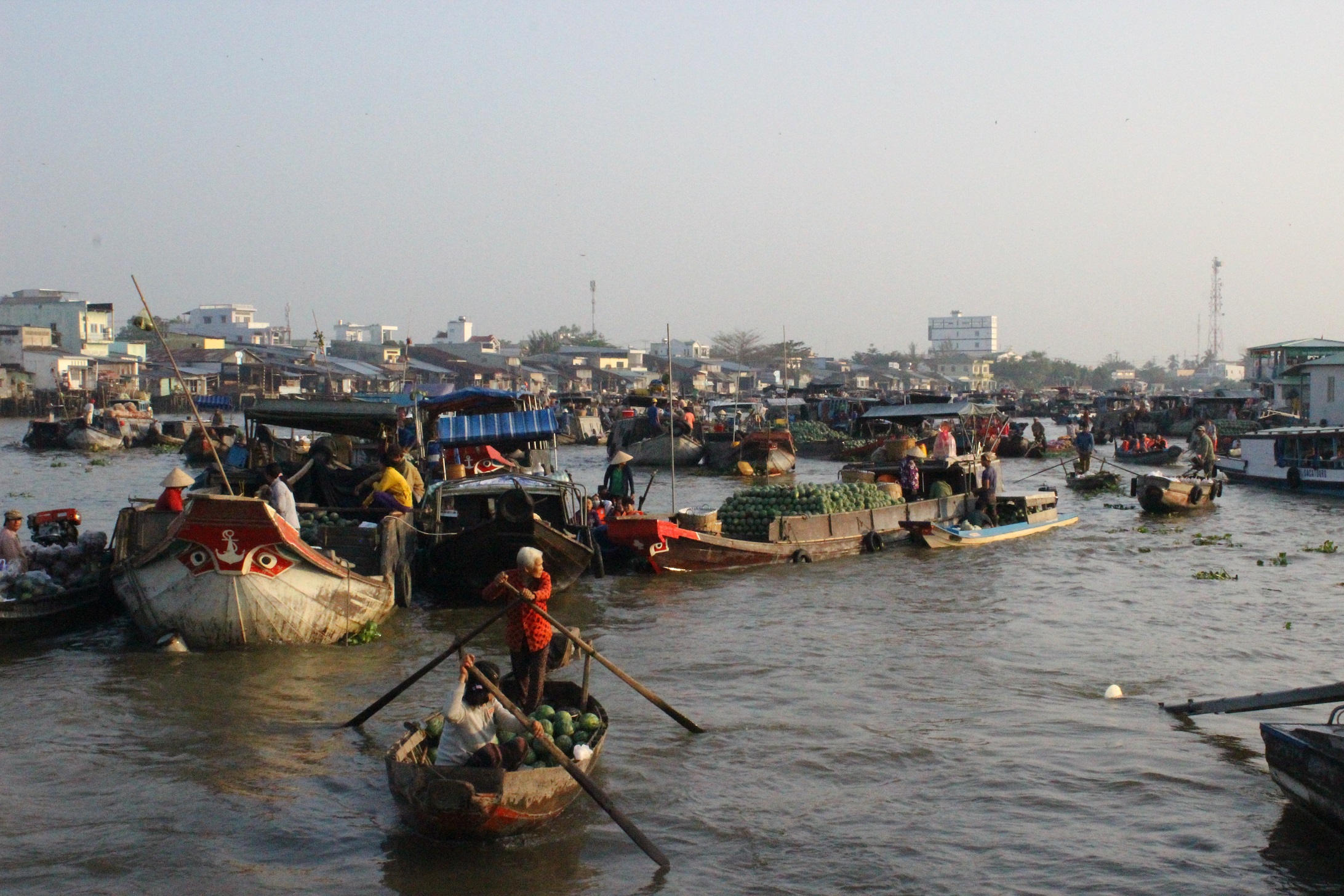 作为九龙江平原地区的水果、农产品、粮食和食品批发市场,丐冷水上集市早晨4、5点开市,那时数百艘船只已聚集在这里。来自胡志明市的游客潘俊明说: “集市上有数百艘船只,买卖活动非常热闹,销售各种各样的商品和食品。这里的商品数量很多,按质量和尺寸分类。商品介绍方式也很独特,就是每条木船的前面都支着木架,上面挂着船上卖的东西。”
