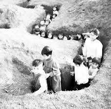 最大的照片挂在展厅中央显眼的位置。照片中是两个头戴草帽准备去上学的女孩子。如雨的炸弹不能夺走孩子们的天真、活泼,也不能阻止他们上学的脚步。小朋友们自己挖掘交通壕、防空洞。幼儿园、教室都建在牢固的地窖里。孩子们学会了简单地包扎、做饭。一节课常常多次被警报、爆炸声、战机呼啸声打断。不过,即使在战争时期,孩子们依然活泼可爱、勤奋好学。70岁高龄的阮春莲大爷说,图片展让他想起了当年疏散下乡、挖掘防空洞的岁月。他说:“当年,孩子们的脸上没有一点害怕。敌机飞来时,父母报着孩子躲进防空洞。他们一点也不害怕。战争期间,所有活动仍正常进行”。