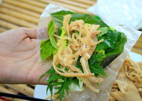 猪耳夏卷的做法比较简单,首先洗净猪耳朵,煮好后切片,加上一点干炒米粉和调料,然后用榕叶或卷皮包着就行了。虽然简单,但河内有些餐馆单做这个就做了数十年了,每天服务数千人次食客。