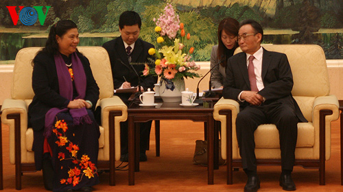 据本台驻中国记者报道,应中国全国人大常委会的邀请,以越共中央政治局委员、国会副主席丛氏放为首的越南国会代表团4日对中国进行访问。丛氏放5日下午在北京人民大会堂会见中共中央政治局常委、全国人大常委会委员长吴邦国。丛氏放表示,越中历史悠久的传统友好关系是两国人民的宝贵财富。越南党、政府和人民一向珍惜并感谢中国人民在过去的民族解放斗争事业及今日的建设和保卫国家事业中给予越南巨大和有效的支持和帮助。吴邦国表示,丛氏放此次访问将继续深化两国关系,并重申中国高度重视发展同越南的传统友好和全面合作关系,为两国人民的共同利益,为地区的和平稳定做出贡献。