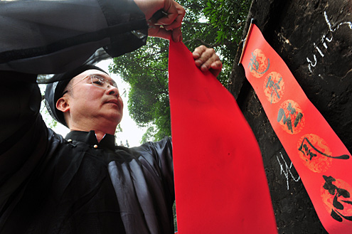 随后,垂庄老师就讲起了她在中国过年的故事:“我曾经在广西桂林读4年的书,跟当地人民一起过节,气氛特别热闹。那里的过年风俗与越南差不多,漓江上有赛龙舟,男女老幼都来看,赛前还举行祭拜天地仪式,唱民歌,很有意义。这段时间,各大商场还举行舞龙、文艺和武术表演活动。走进居民区,到处都是喜庆的红色,红灯笼、红春联、门上还贴红福字,很漂亮。”