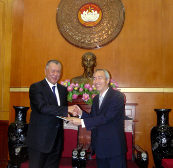何厚铧在会见中对能访问越南祖国阵线中央委员会表示高兴,并认为,中越两国高级领导人的互访和双方的交流合作将有助于增进中越两国友谊。