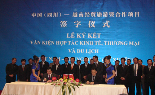 从政府的角度,双方十分重视加强经贸往来的各项贸促活动。在越南计划在华设立贸易促进办公室的5个地方中,有一个是四川省省会成都市。2009年,越南工贸部与中国四川省政府在成都签署了加强经贸合作备忘录。据此,2010年3月,越南电力集团与中国东方投资商签了年发电量1200兆瓦,总投资额1.6亿美元的发电站建设项目。该项目于2010年9月启动,一号机组计划于2014年第四季度完工,二号机组于2015年第一季度完工并投入运行。