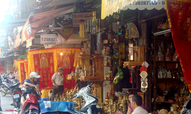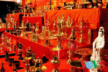 他说:“鸿兴铜制祭品质量很好,品种也适合越南祭俗,款式也很多。鸿兴公司每年在春节前后举行为期三个月的展销会,卖得很多。每年有很多越南客户来订购,月销售额达20亿越盾。”