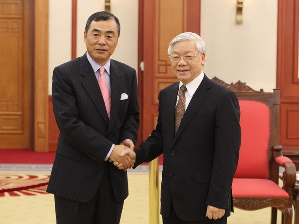 | 越共中央总书记阮富仲会见中国驻越大使孔铉佑。图片来源:越通社 |