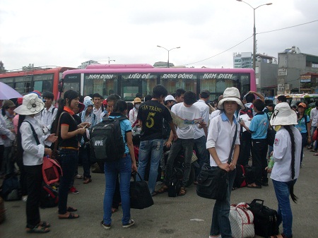 看看他们的行李,谁是新生,谁是老生一目了然。老生行李简单,新生是满满当当一大箱,还有父母、家人、朋友前来送行。新生红军表示:“我有些担心,去中国留学是我的愿望,我也看过书报、杂志,听别人讲怎么准备行李、怎么走,但还是有些担心。我家在海防,但今天父母和兄弟们都来给我送行。”