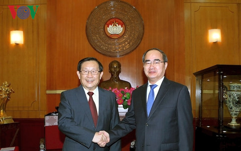 (VOVworld)- 越南祖国阵线中央委员会主席阮善仁4日会见中国全国政协副主席、中国致公党中央委员会主席、科技部部长万钢。阮善仁表示,越南党、国家、祖阵和人民十分重视与中国党、国家和政协的友好合作关系。除了经济合作外,双方要以新形式大力推动民间交往,丰富人民友好交流形式。