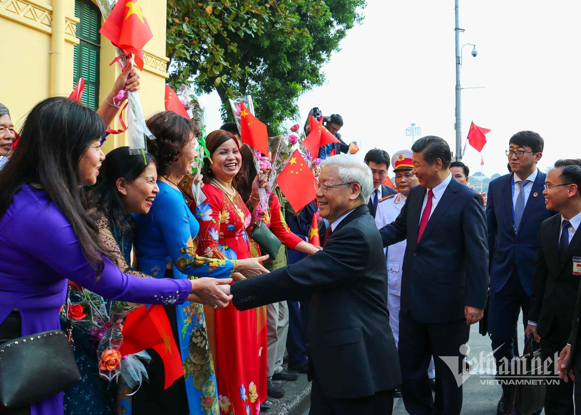 阮富仲总书记主持仪式,欢迎习近平主席访越。 |