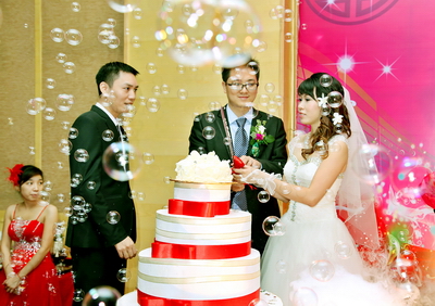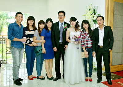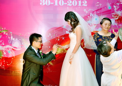 就这样过了4年,后来,明奎去广州实习。他们经常上网联系,有时候也忍不住打一个电话,听听对方的声音,说一句晚安。实习一结束,明奎立刻赶回桂林,迫切要见到心爱的姑娘。之后不久,两人毕业了,垂玲回到了越南。分开的这一段时间,两人都觉得世界上没有什么人能代替对方在自己心中的位置,因此决定结婚。明奎告诉我们:“因为两个家庭、两个国家距离比较远,所以刚开始我们说要结婚的时候,双方父母都有些反对。后来,我们慢慢给父母解释,父母也看到我们确实相爱,最后他们就妥协了,让我们能够顺利地结婚。”
