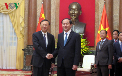 (VOVworld)- 越南国家主席陈大光6月27日下午在主席府会见正对越南进行访问并共同主持越中双边合作指导委员会第九次会议的中国国务委员杨洁篪。