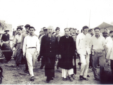 | 左起前排依次为:谢维雄、胡志明主席、谢维显 |