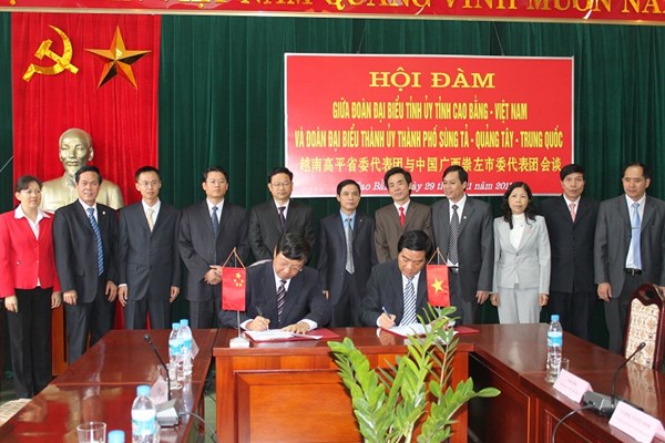 同一天,由中国广西龙州县边防部队会晤会谈站和崇左市公安边防支队组成的代表团在高平市同高平省6个边防站和复和边防部队会晤会谈站代表团举行越南国庆70周年座谈会。