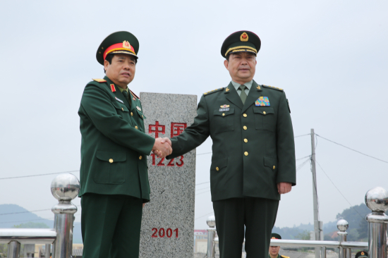 (VOVworld) - 越中第三届边境国防友好交流期间,由冯光清部长率领的越南国防部高级代表团和由常万全部长率领的中国国防部高级代表团3月29日在谅山省禄平县芝麻口岸第1223号界碑举行致敬仪式。