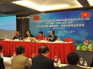 (VOVworld)- 越中经贸、投资与旅游论坛5月21日在中国北京希尔顿大酒店举行。论坛由越南驻华大使馆和中国-东盟中心联合举办。越南驻华大使阮文诗表示,本次论坛为两国有关部门、地方和企业加强沟通、扩大合作搭建了平台,有助于实施越中经贸合作5年发展规划和实现到2015年双边贸易额达600亿美元的目标,从而促进两国经贸、投资与旅游合作快速、有效发展,造福两国人民。中国-东盟协会会长顾秀莲强调,论坛将大力推进中越经贸、投资与旅游合作。“中国-东盟”中心是中国与东盟十国成立的组织,其职能是提供信息、咨询服务和组织活动,推介中国与东盟各国的生产行业、商品、投资环境等。