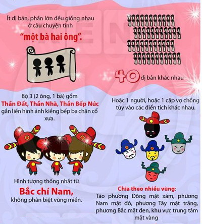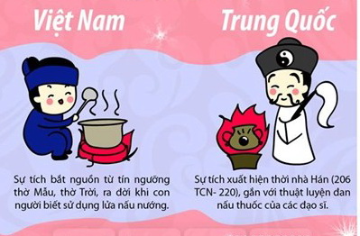 河内文化大学民间信仰系教师黎黄明说:“虽然两国祭祀灶君的风俗都有悠久的历史,但民间流传的故事有不少不同的版本,比如在越南,灶君有三位,分别管理土地、家庭和厨房,也就是厨房火炉上的铁三角支架。这个说法流传于越南北南各地。不过,在中国,由于地域辽阔,每个地方的文化风俗会有差异,因此流传不少版本。据统计,中国关于灶君的传说共有40多个版本。”