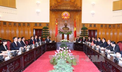 (VOVworld)- 越南政府副总理阮春福7月16日下午在政府总部同中国国务院副总理张高丽举行会谈。