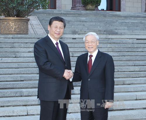 | 中共中央总书记、中国国家主席习近平2015年4月在北京欢迎越共中央总书记阮富仲访华。图片来源:越通社 |