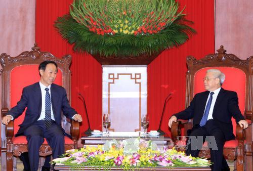 | 越共中央总书记阮富仲会见中共中央委员、中国全国政协副主席、中央对外联络部部长王家瑞。图片来源:越通社 |